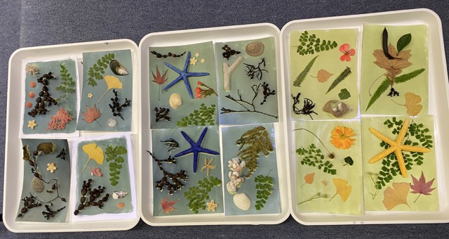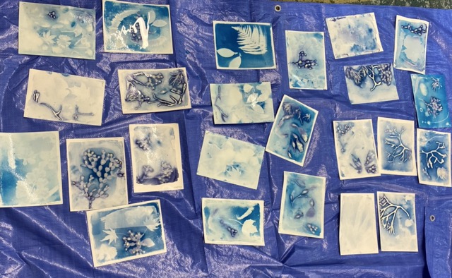 And to add another artistic angle, we also included a cyanotyping activity - where the subject and the sun’s UV rays combine with chemistry to create silhouettes and shadows on paper. This really got the students thinking about the shape and form of the different specimens!